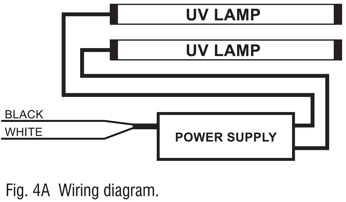 - MinistickTM UV multi-voltage ballast wiring: Black to hot terminal. White to neutral.