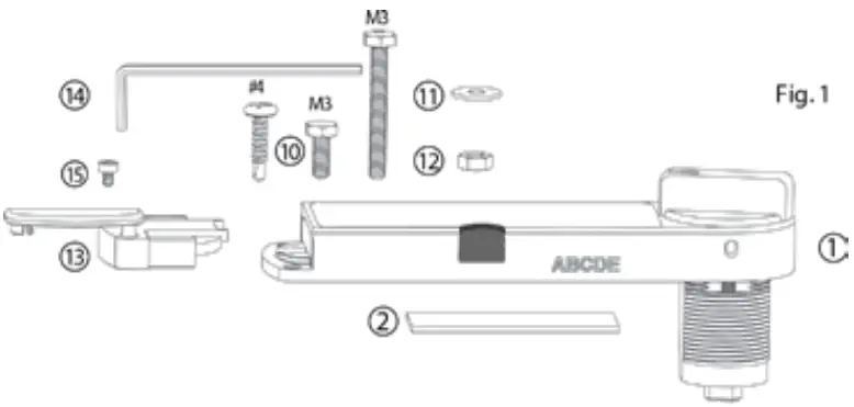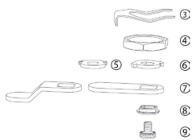 See Figure 1 for available mounting hardware for the lock. When mounting the lock to a cabinet door or drawer, a separately mounted handle should be used to operate, open and close the door or drawer. When installing the lock to the cabinet/drawer, you have the option to fasten the lock body with a nut or a retaining clip. A ‘wonder’ washer (#3) is provided for installation in a drilled hole through either wood or metal panels.