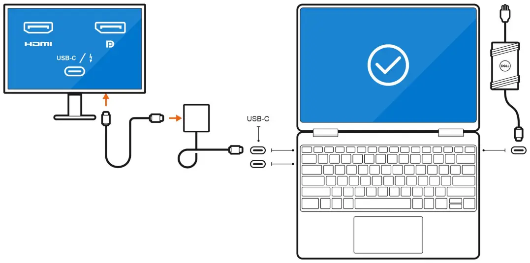 NOTE: When connecting a display using an adapter or docking station, it is recommended that you connect the display to the docking station first and then connect the docking station to the USB-C port on your computer.