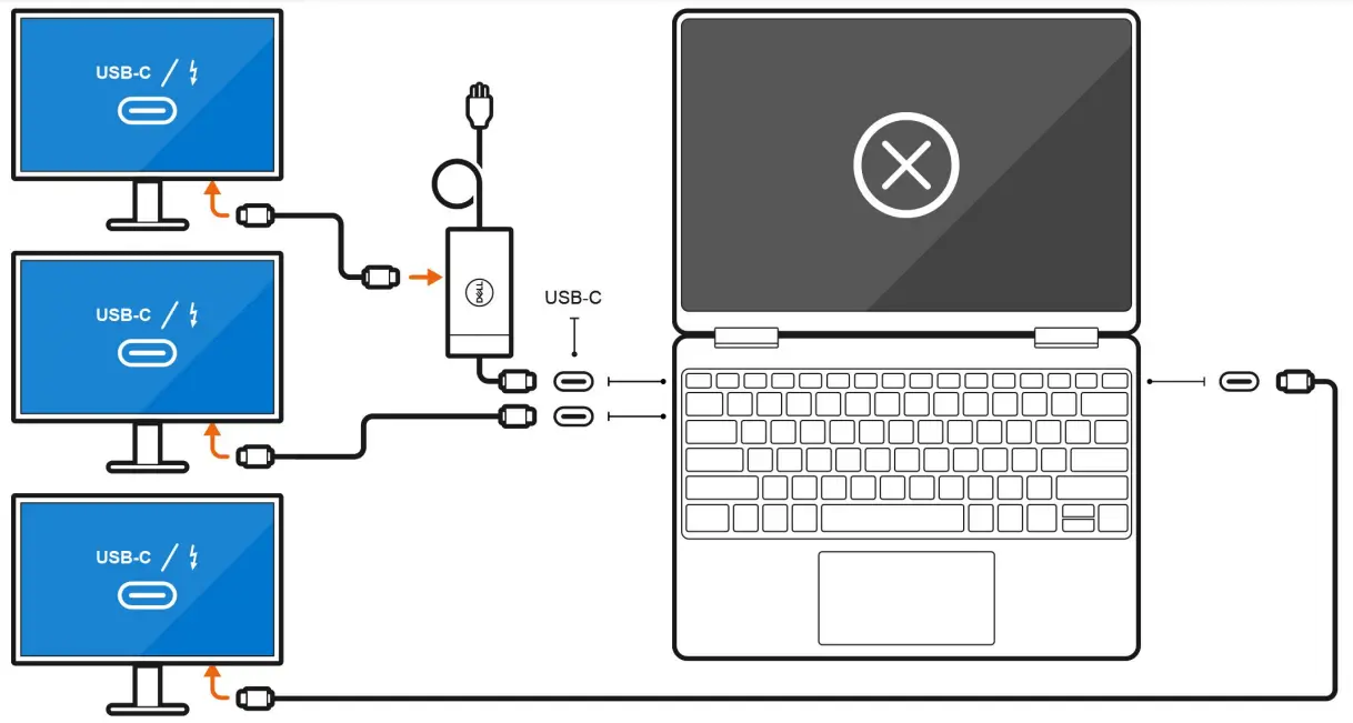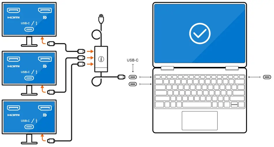 - Connect up to three external displays using a USB-C docking station or USB C to Thunderbolt/HDMI/DisplayPort adapter: