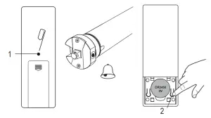 Press the learn button on the master remote control (1) or on an already learned remote control 8 times (motor beep) and then press the learn button on the new remote control (2). The new remote control has been success- fully taught. The motor confirms this with a short jerk in each direction.