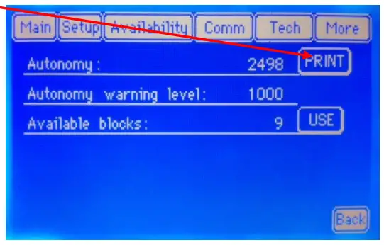 Otherwise if “Back” button is pressed, the instrument comes back to Main Screen