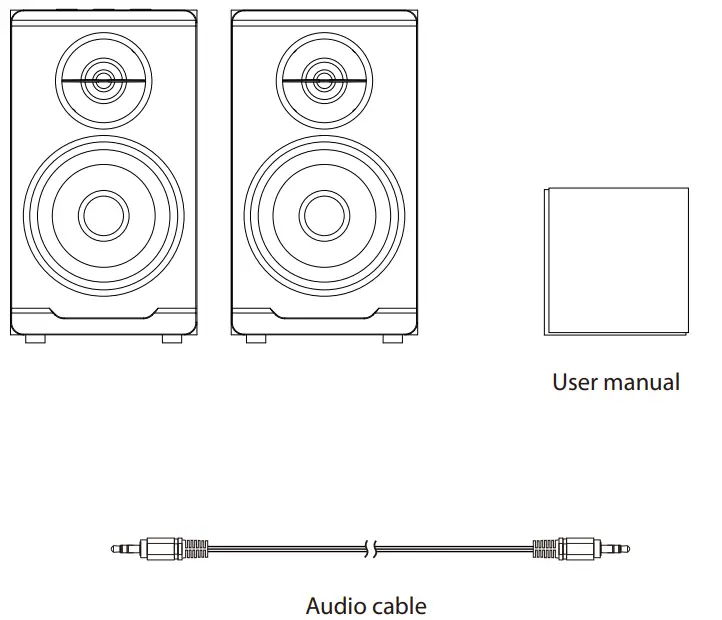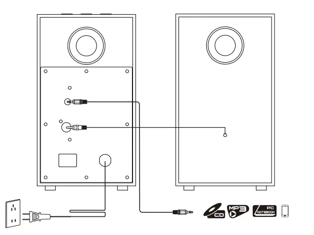 - Connect audio source (mobile phone, tablet, etc.) to the AUX port on the rear panel of the active speaker using audio cable;