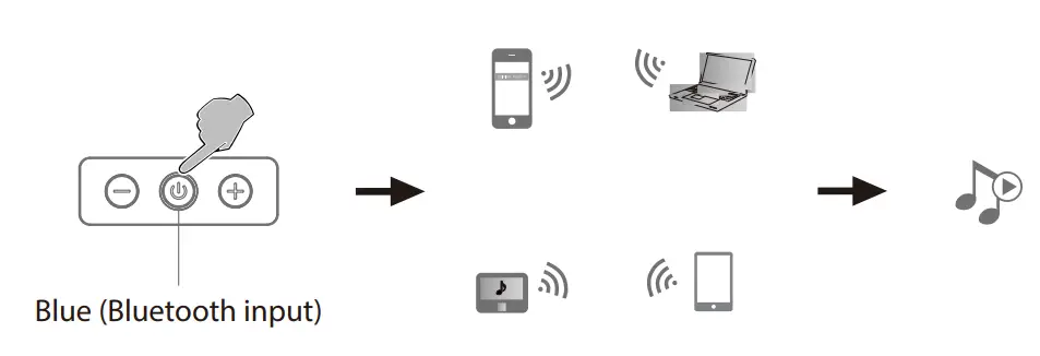 - Make sure the speaker is switched to Bluetooth input. If it is in other audio input modes, Bluetooth will not connect. Disconnect from any Bluetooth device by pressing and holding the ” ” button, then try again.