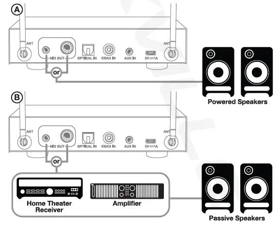- Connect the receiver to a power outlet and turn it on.