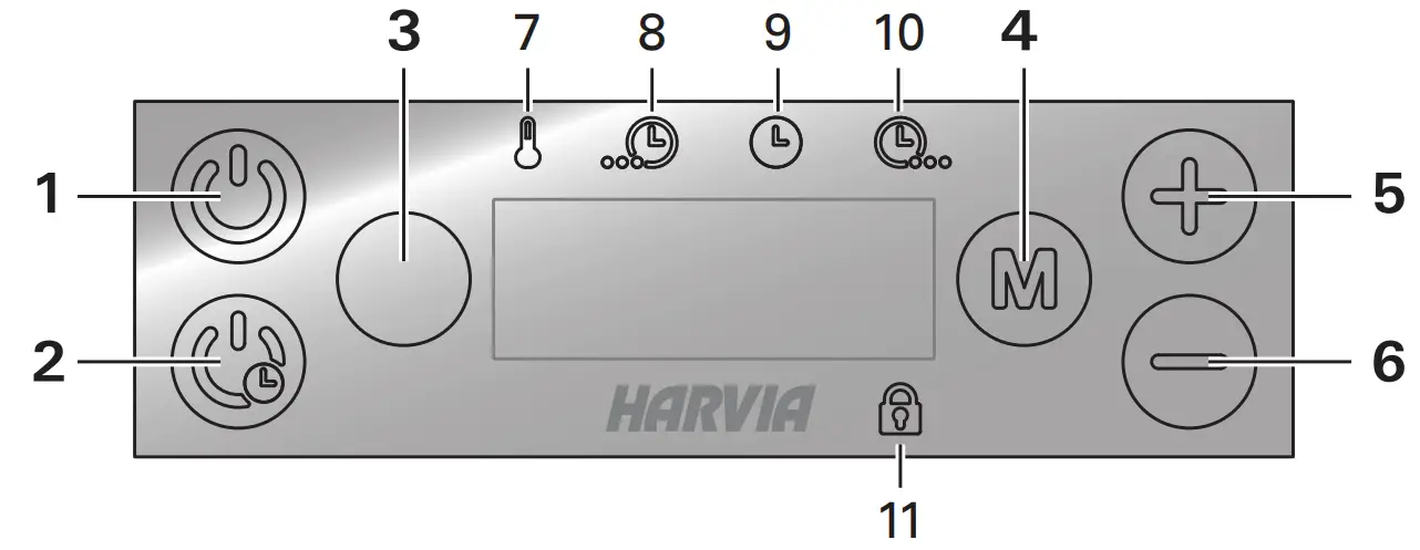 - On-time adjustment range: family saunas 1–6 h, public saunas in apartment buildings 1–12 h. For longer operating times consult the importer/manufacturer.