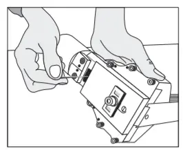 - Loosen screw with a 3mm Allen wrench and remove the block through the window.