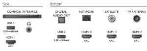 - Other connections: Satellite Connector, Common Interface Plus (CI+), Digital audio out (optical), Ethernet-LAN RJ-45, Headphone out, Service connector