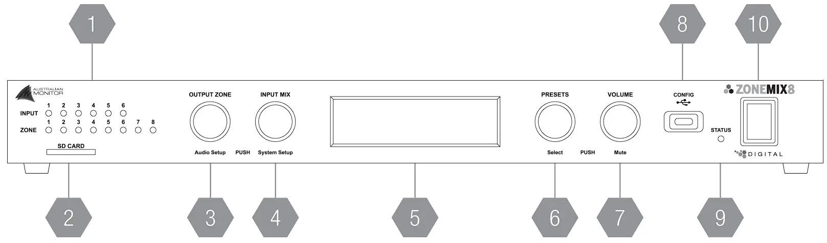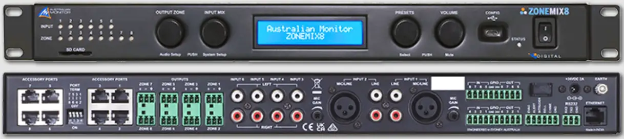 A full manual can be downloaded from: www.australianmonitor.com.au/collections/zonemix-system