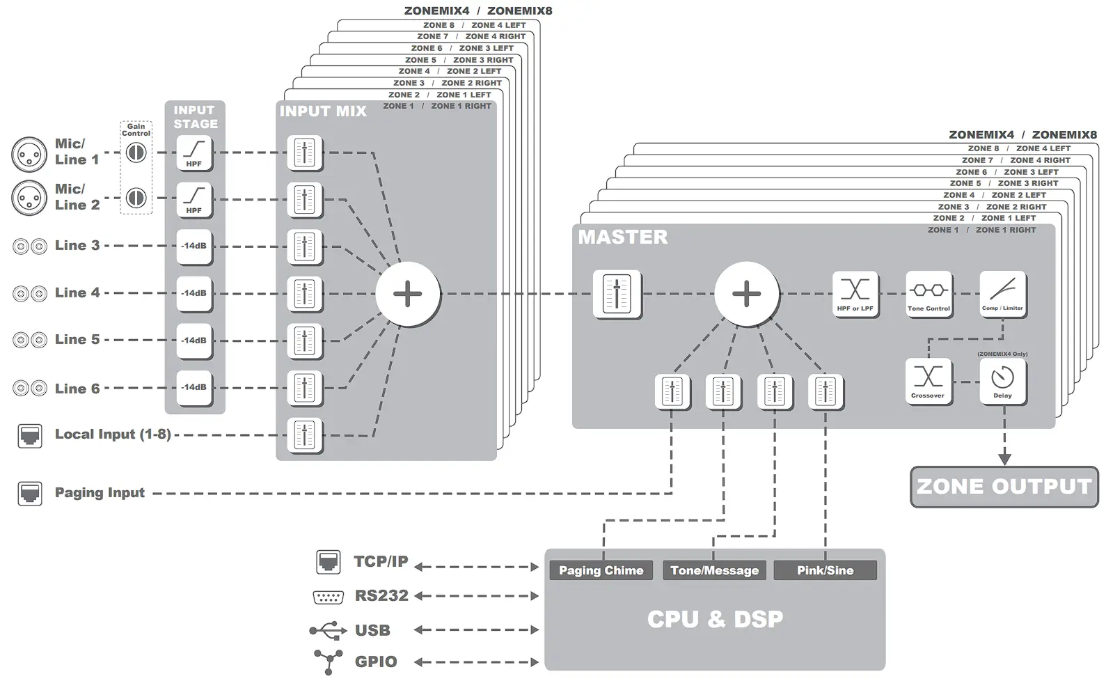 ZONEMIX8 8 Zone Mixer and Paging System
