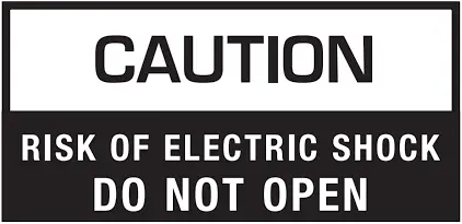 ![]() | TO REDUCE THE RISK OF ELECTRIC SHOCK, DO NOT REMOVE COVER (OR BACK). NO USER SERVICEABLE PARTS INSIDE. REFER SERVICING TO QUALIFIED SERVICE PERSONNEL. |