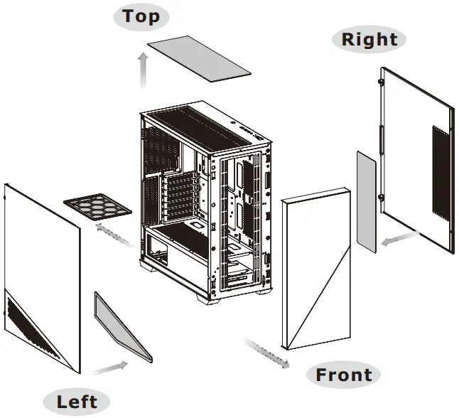 | Top | 3 x 120 mm, 2 x 120 mm,1 x 120 mm | 2 x 140 mm, 1 x 140 mm | |