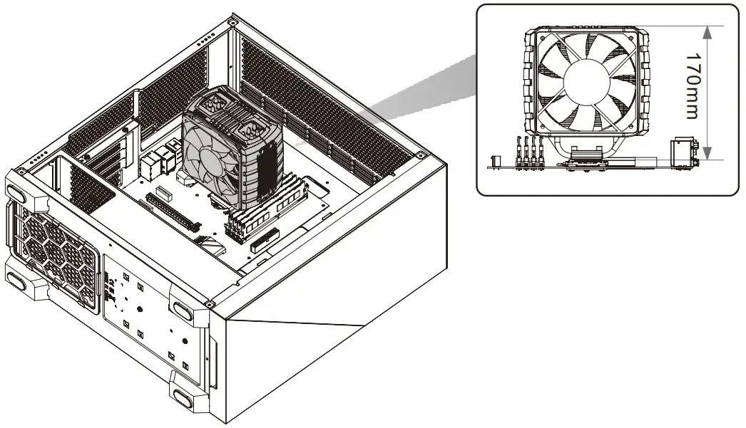 | Clearances | CPU cooler height limitation | 170 mm | |