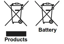These symbols indicate that the electrical and electronic equipment and the battery with this symbol should not be disposed of as general household waste at its end-of-life. Instead, the products should be handed over to the applicable collection points for the recycling of electrical and electronic equipment as well as batteries for proper treatment, recovery and recycling in accordance with your national legislation and the Directive 2012/19/EU and 2013/56/EU.