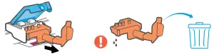 Remove and discard orange plastic pieces. Handle carefully to avoid ink stains.