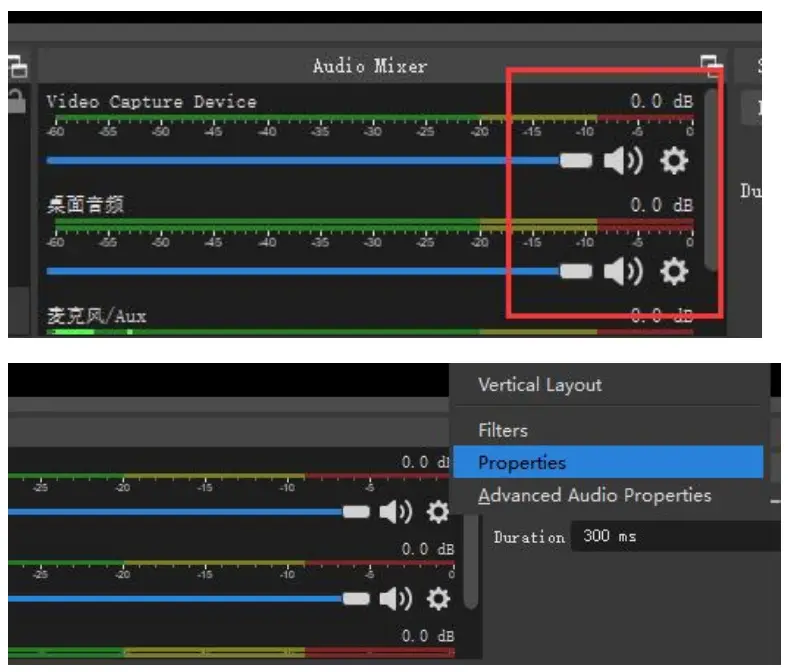 Step3. Click on the audio setting icon to setting audio, as shown in the picture. Then enter the properties, and select the device