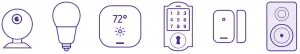 SmartThings works with a wide range of connected devices, including lights, cameras, locks, thermostats, sensors, and more.