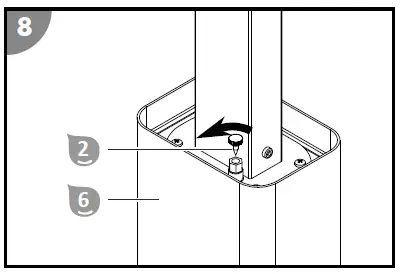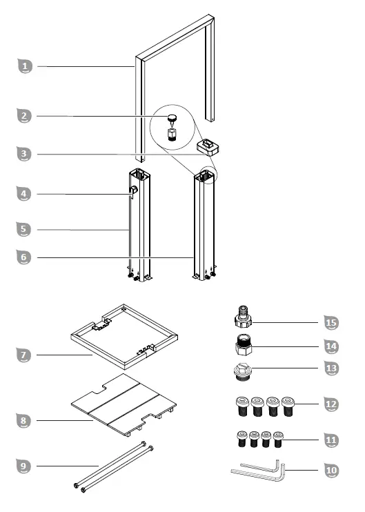 - Position the frame 7 at the prepared location. Make sure that the solar shower is pointing in the correct direction.