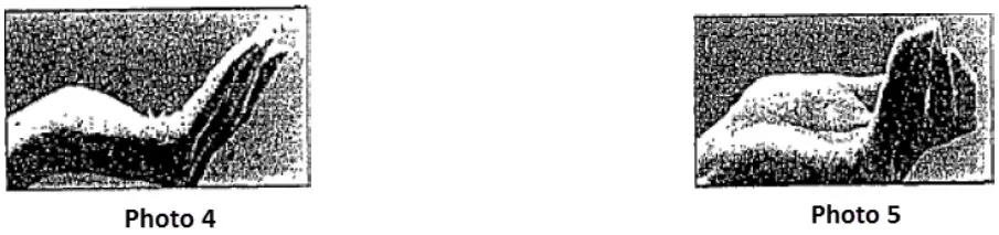 a) Look straight ahead and up slightly. With the middle finger of your dominant hand, pull the lower lid down slightly (Photo 9).