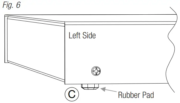 - Position and affix rubber pads (C) (included) at each corner on the bottom of the unit (Fig. 6).