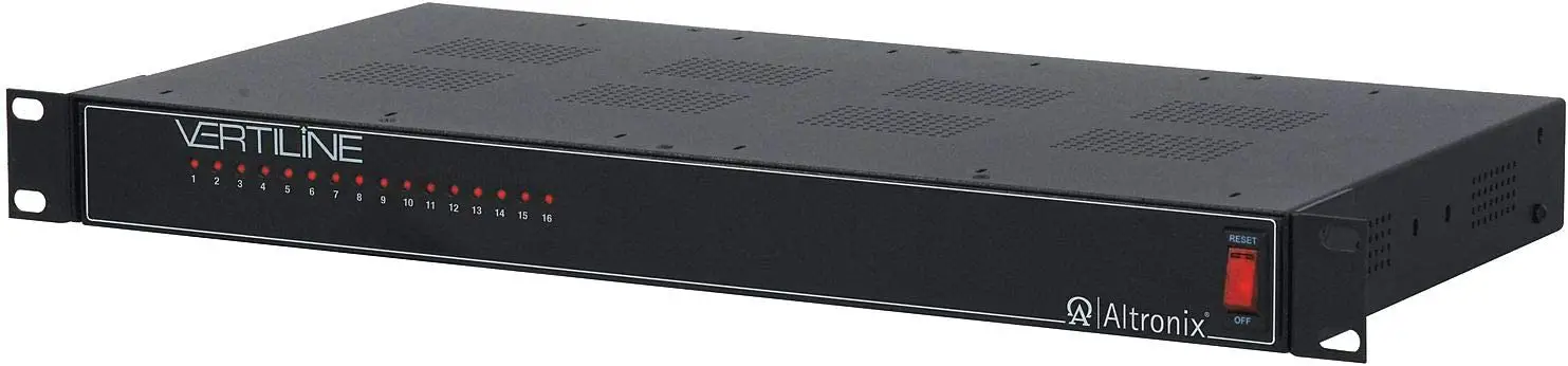 Altronix VertiLine Rack Mount Power Supplies provide sixteen (16) filtered and electronically regulated power outputs in a space saving 1U EIA 19” rack mount chassis. The units are available with either 12VDC or 24VDC power outputs. VertiLine Rack Mount Power Supplies are also available with eight (8) outputs.