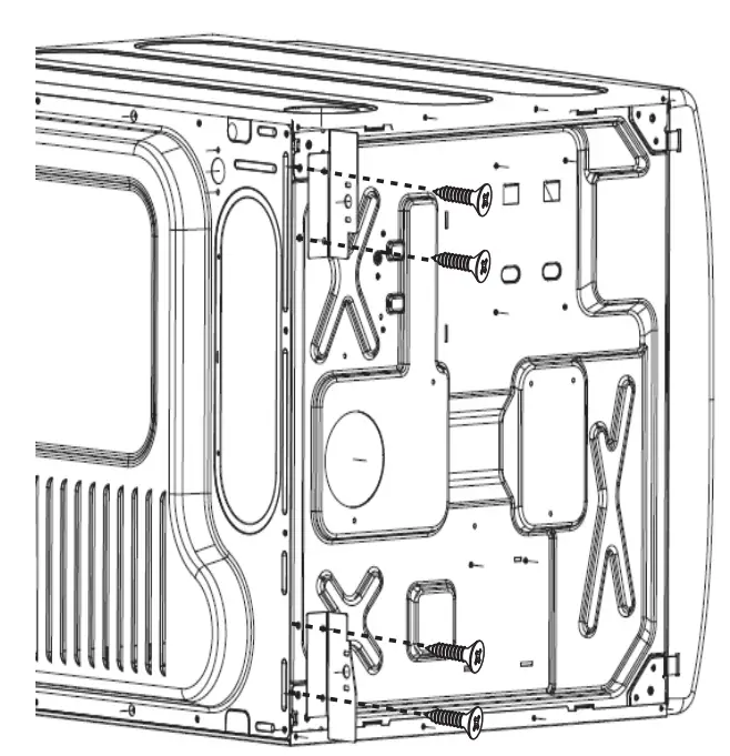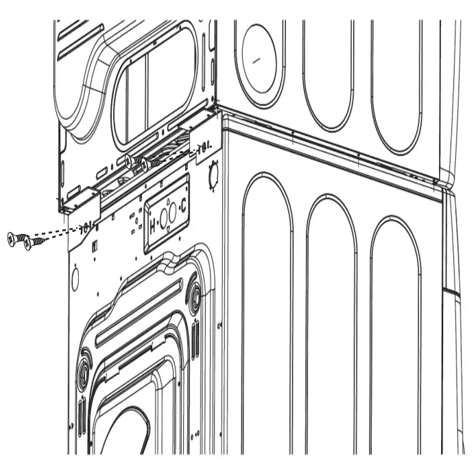 C. Align the holes in the bracket with the holes in the back panel of the washer. Using a Phillips screwdriver, fasten the two #8 x 1/2″ tapping screws.