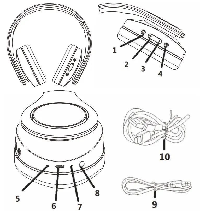 Excessive force or being stroked by something all will damage buttons. - Please do align the USB port when plug or pull USB cable in case that damages the USB cable fail to charge the headphone.