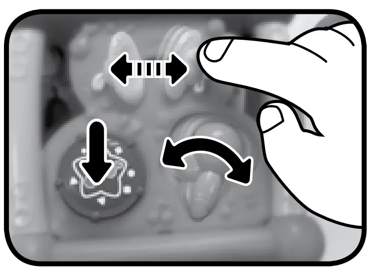 - Press, slide or twist the instruments to learn colors, instrument names, instrument sounds and hear a variety of melodies. The lights will flash with the sounds.
