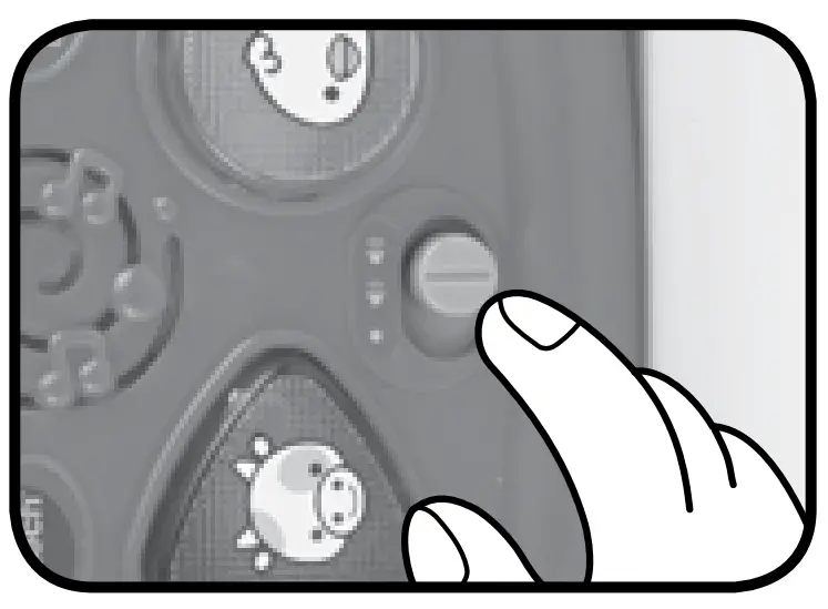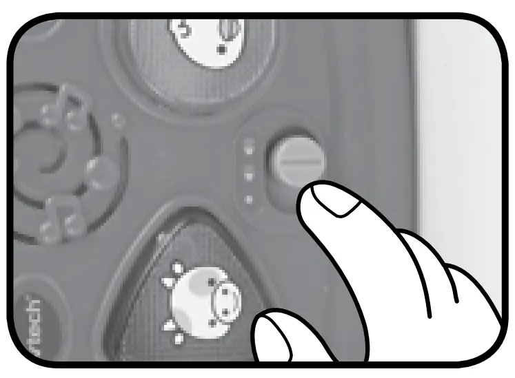 - Slide the on/off/volume control switch to turn the unit on. You will hear a playful sound, a fun sing-along song and a phrase. The lights will flash with the sounds.