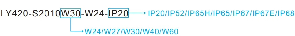 IP65: Silicon tube / Heat shrink tube / Extrusion tube / U milky tube + clear cover, ~3% less output and 2nd best color consistency, Indoor use or semi-outdoor use, for raining environments.