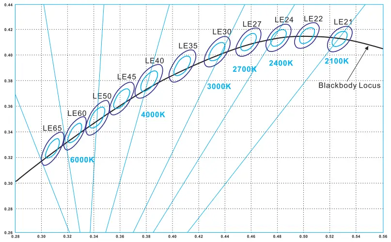| CCT (K) | Lumen (lm/m) | Efficacy (lm/w) | CRI | R9 | TM-30-15 | |