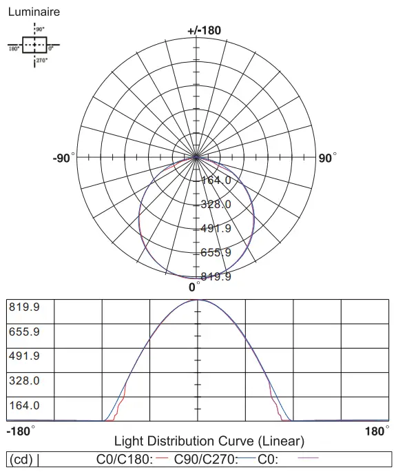 Light Distribution Curve[Data base on 1m IP20 6000K CRI>90, Unit:cd]