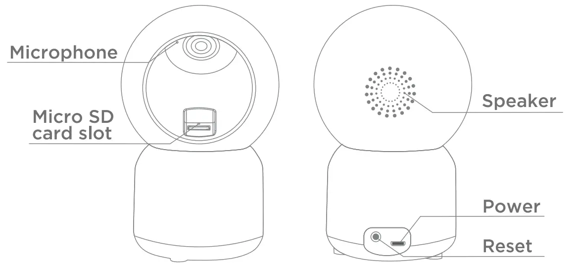 | Reset | Press and hold for 5 seconds with pin to reset the camera. |