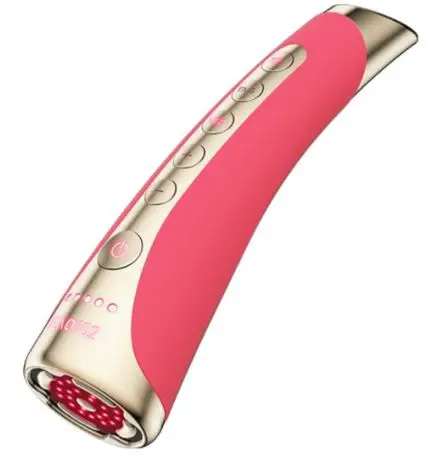 - Lightly press the base of your device to your face, so that all five gold plates are in contact with your skin at all times. Slowly glide the device in tight circular motions and/or straight lines across each facial area, as shown in the comprehensive How To Use video on the app.