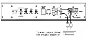 If your head unit does not have RCA outputs, you can use the speaker outputs for the audio source for the subwoofer. Use the supplied cable and wire harness and connect the outputs properly as shown in the connection diagram in this manual.panel controls and features