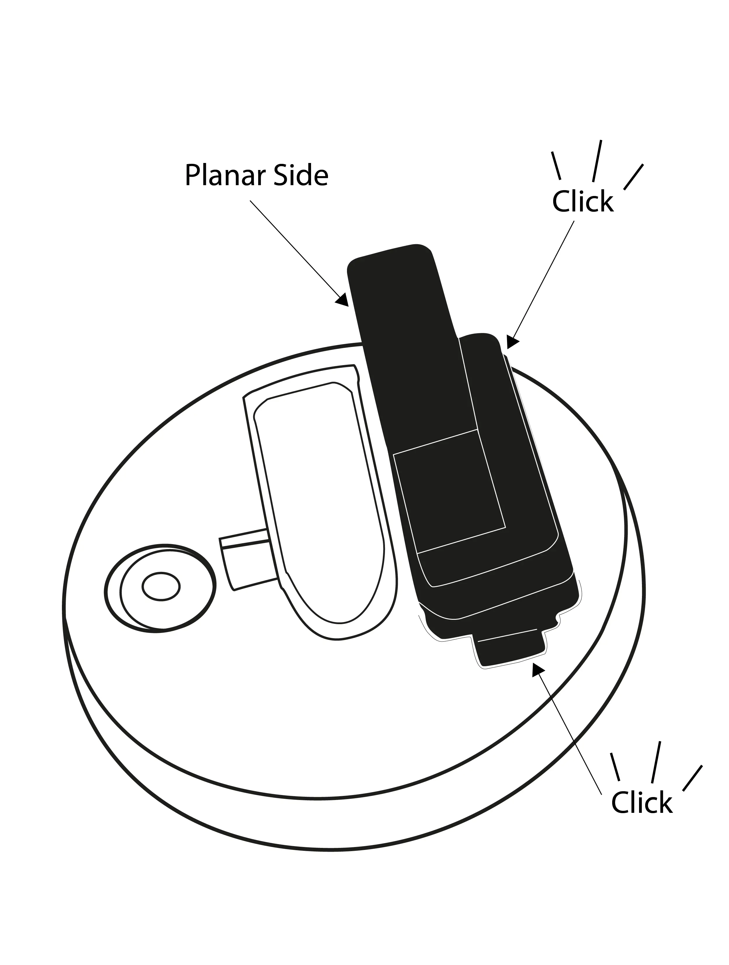 - Push the two snap-in noses from the electronics block away to keep the block tight to the base and to avoid any water leakage.