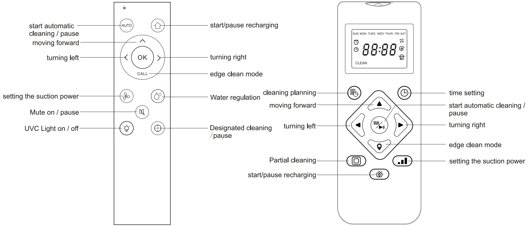 You can adjust the suction power to quiet level, standard level, powerful level, super level by mobile APP or remote control. (standard level by default)