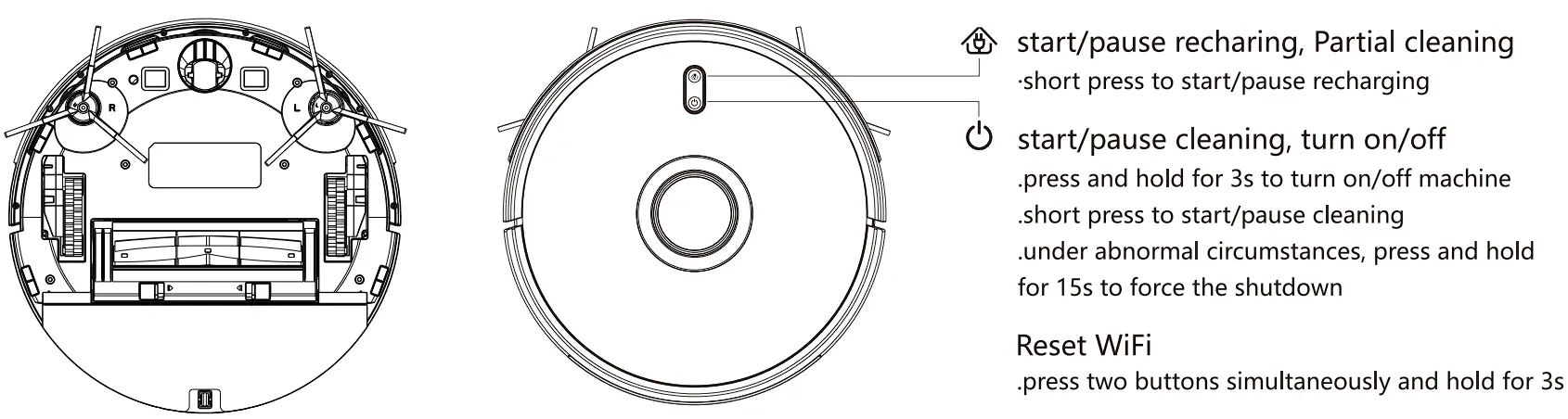 on the host machine or use mobile APP to start/pause cleaning. (press any key in APP to pause cleaning)
