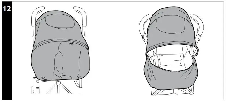 - You can detach the back part of the fabric by unzipping it and use the hood also as a sun canopy (Fig.a). To reattach the back part of the fabric, close the zipper (Fig.b).