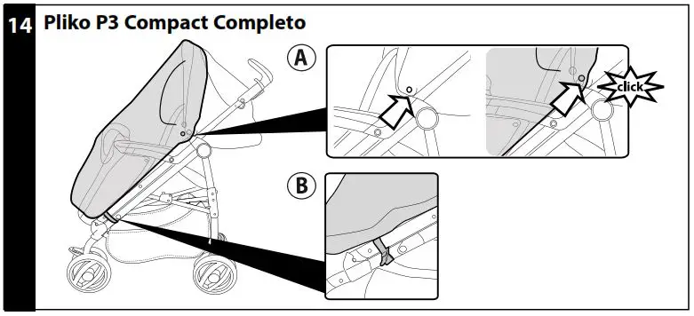 - RAINCOVER: for complete Pliko P3 Compact: to fit the rain canopy, extend it over the stroller and snap fit the buttons on both sides of the hood (Fig.a). Fasten the elastic loops including the chassis in the lower part of the stroller (Fig.b).