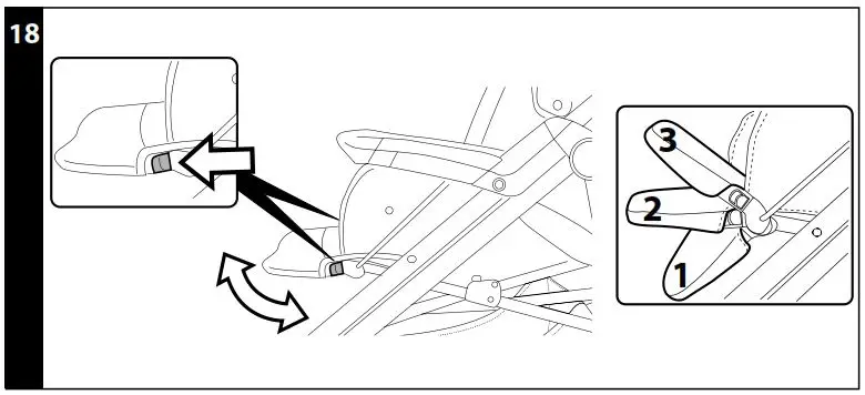 - ADJUSTING THE BACKREST: the backrest reclines to four different positions. To lower the backrest, lift the