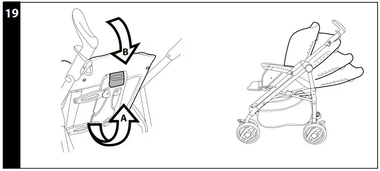 Ganciomatic system, lower the backrest of the pushchair before doing anything else. As shown in step 29.