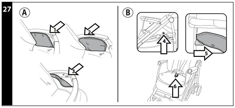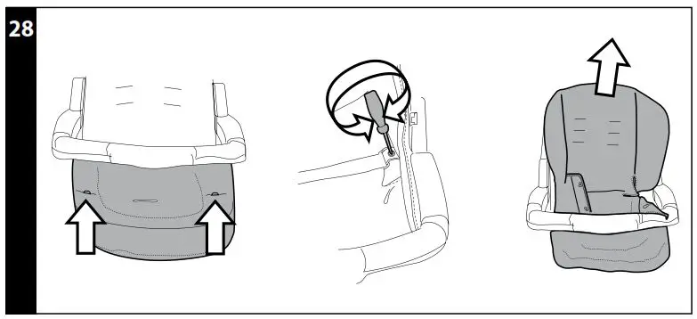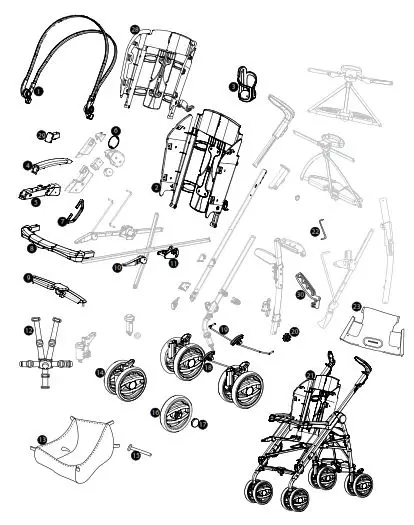 How to transform the pushchair into a chassis:- remove the pushchair’s lining (step 27/28);