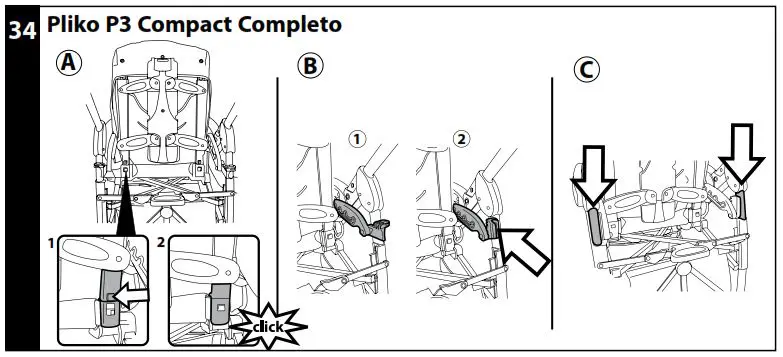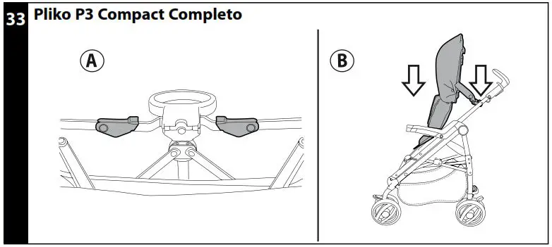 - FOLDING UP: before folding up PLIKO P3 COMPACT,remove the Navetta XL or the PrimoViaggio car seat. The stroller can be folded up using one hand only: pull first one lever upwards and then the other, until they click.