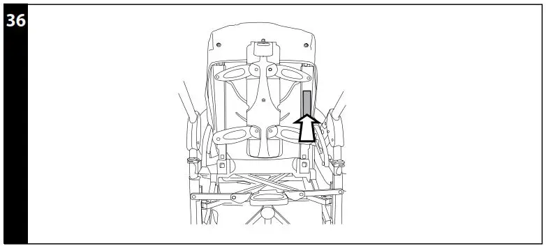 - FRONT BAR: to fasten the front bar, slip both ends of the front bar into the armrests until it clicks into place.