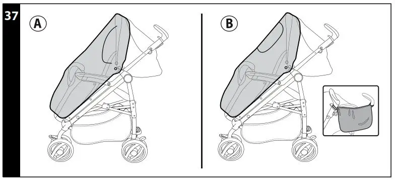 - ACCESSORIES:RAIN CANOPY: can be fastened to the hood (fig_a). MOSQUITO NETTING: can be fastened to the hood (fig_b).