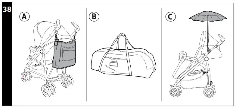 - BAG: diaper-changing bag with pad for changing baby’s diaper. Attaches to the stroller (fig_a).