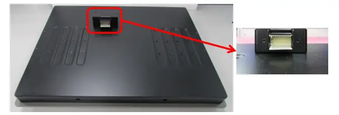 1. The following picture uses a panel PC (P2100+CV display module) as a demonstration. To attach the panel PC to a VESA stand, please fasten eight screws as indicated to fix it on the stand. (Please refer to section 3.13 in this manual for how to attach PC2100 to CV/CS display module.)