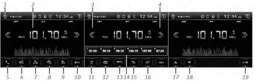 The stations might be FM1, FM2, FM3, AM1 (MW1) and AM2 (MW2) band.- To Memorize a station