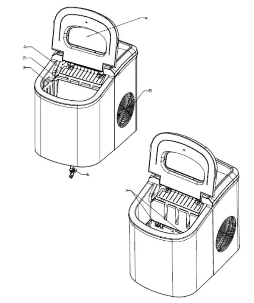 - WARNING: Do not use other types of electrical appliances inside the ice-maker.